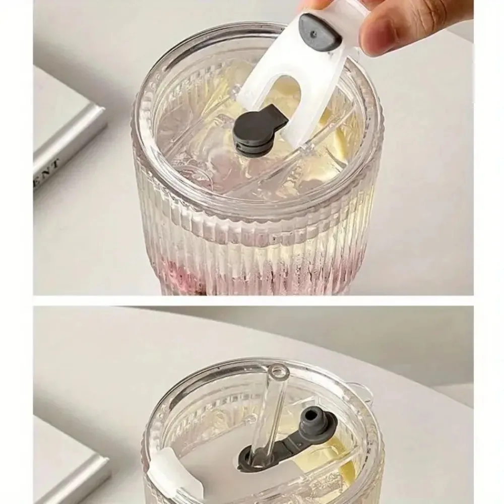 كوب زجاجي مخطط 600 مل مع غطاء وقش