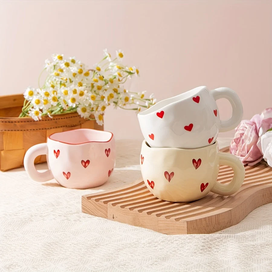 كوب سيراميك مصنوع يدويًا على شكل قلب